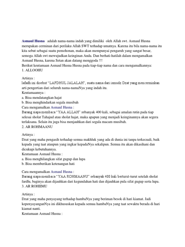 Asmaul Husna Arti Keutamaan Dan Cara Mengamalkannya Pdf